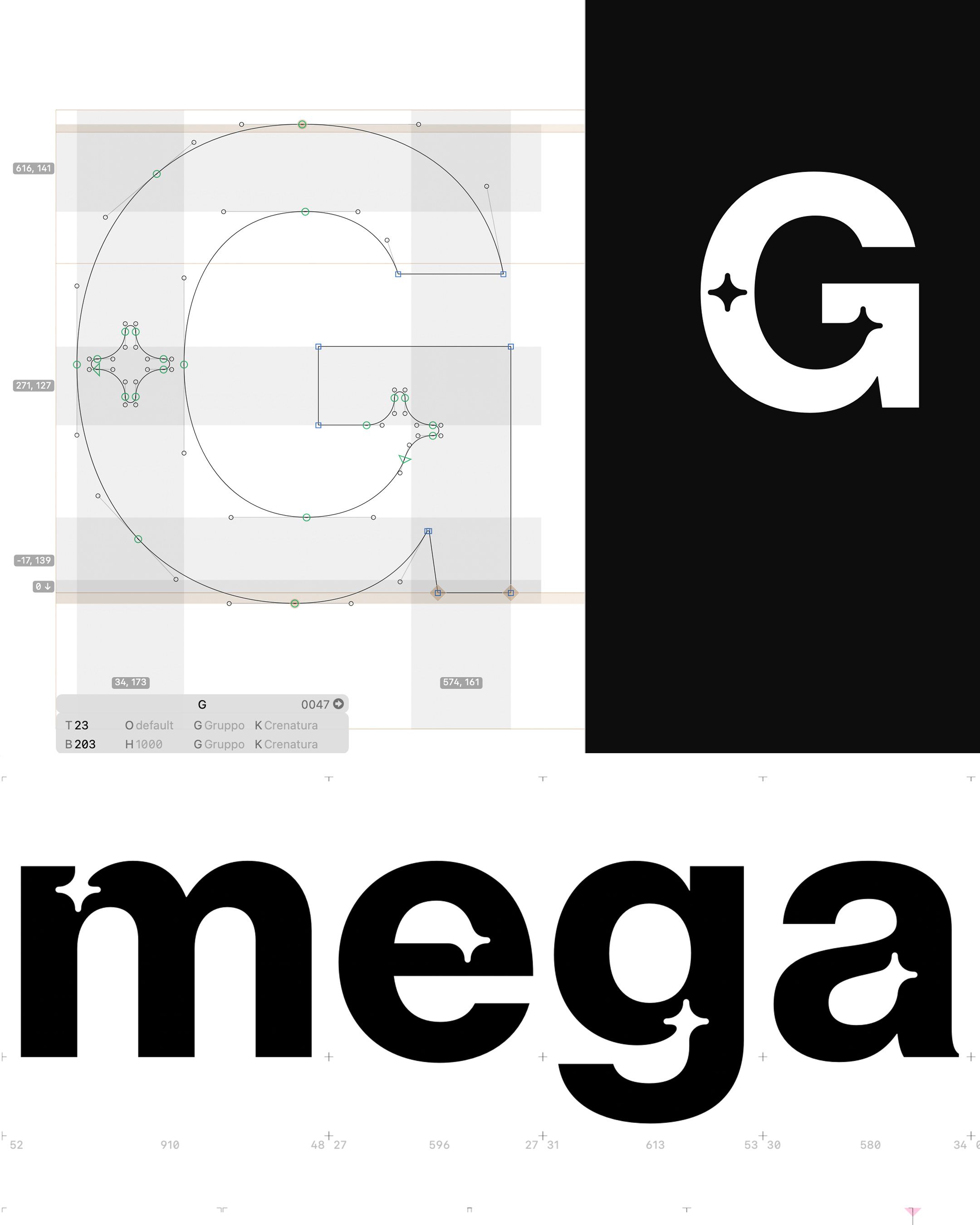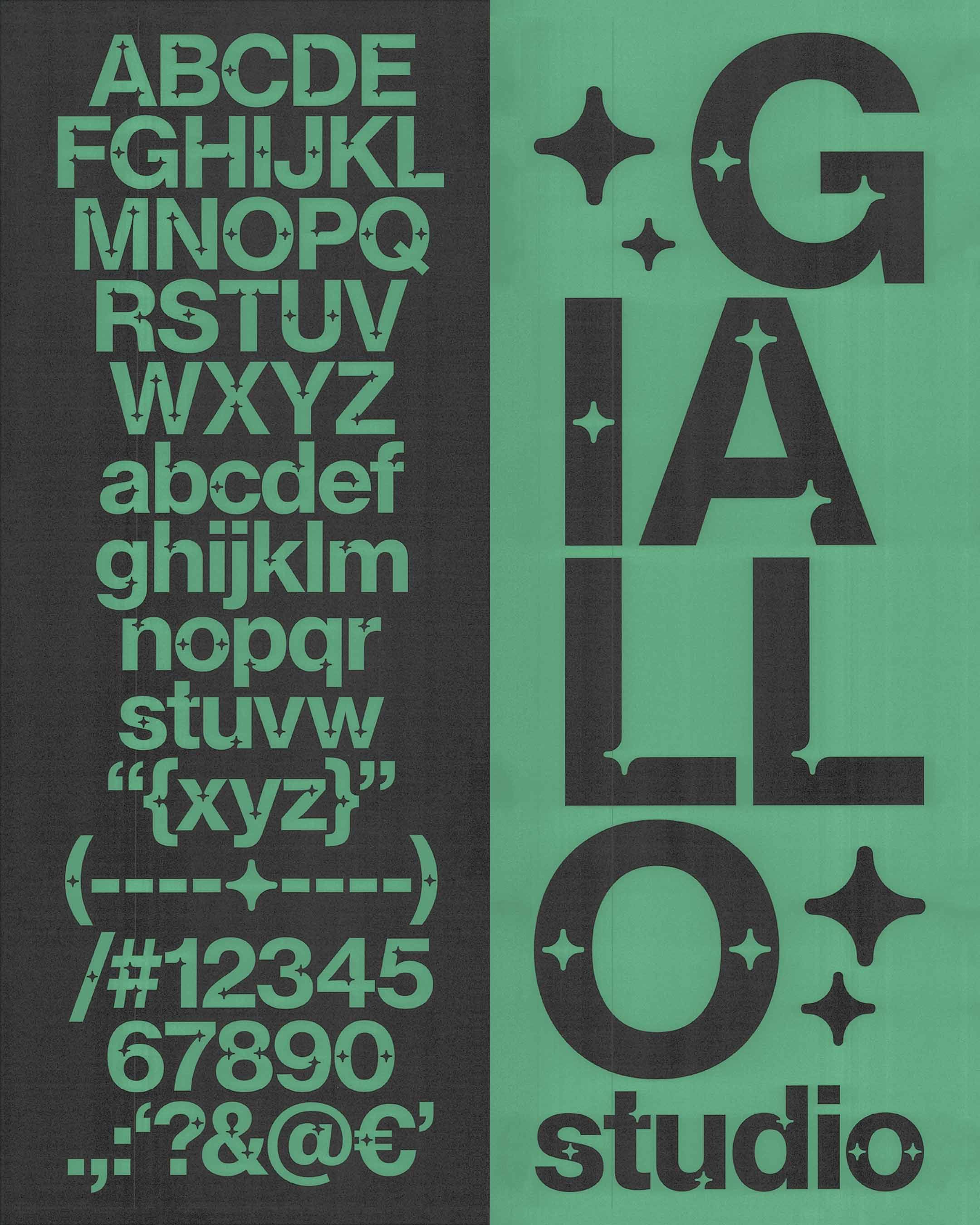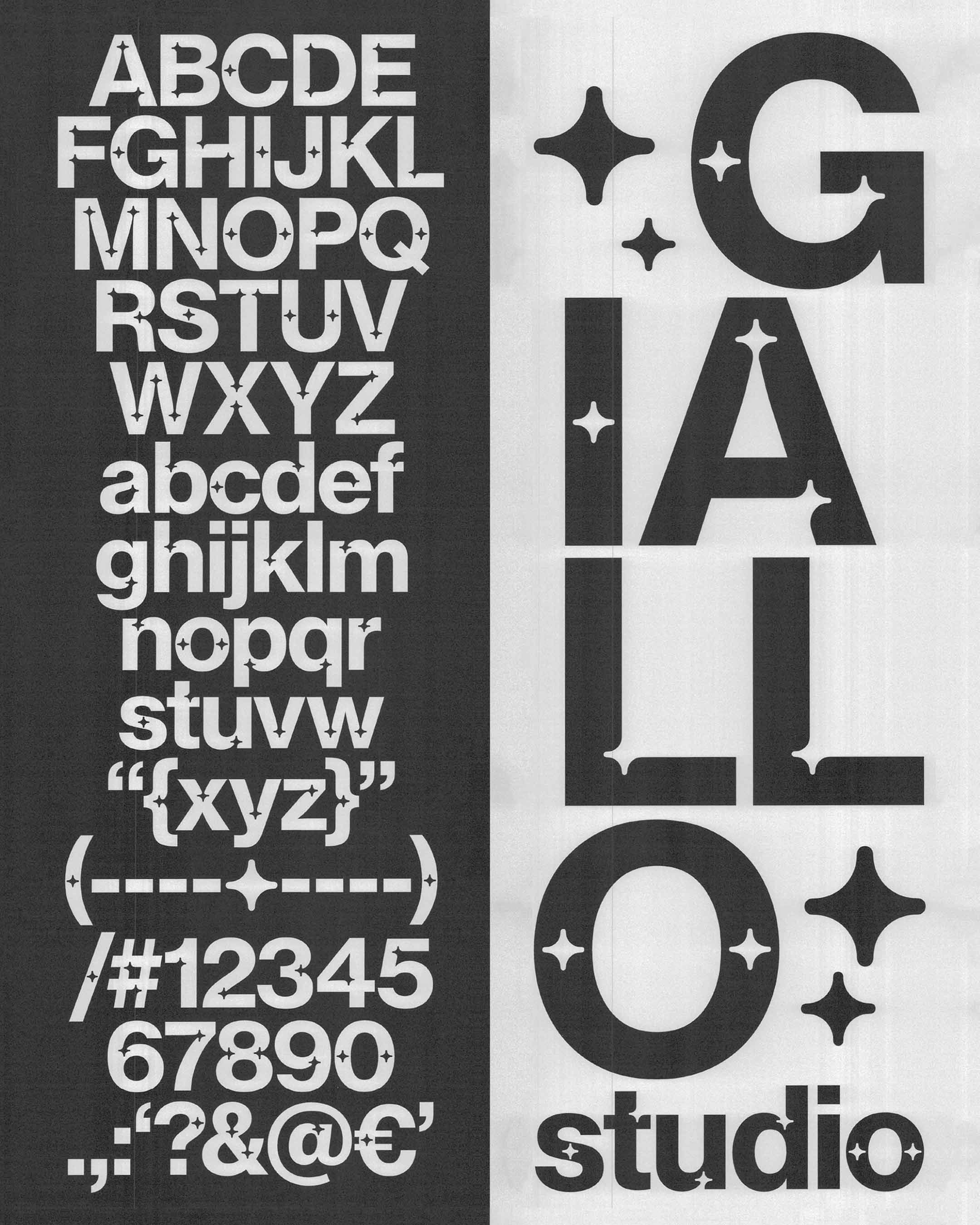 Happy to show you giallo.font, baked in our heads for months! Start with the Neue Haas Grotesk font, add just enough shiny stars, bake it in Glyphs for a few days, ready! Want to use it? contact us :)